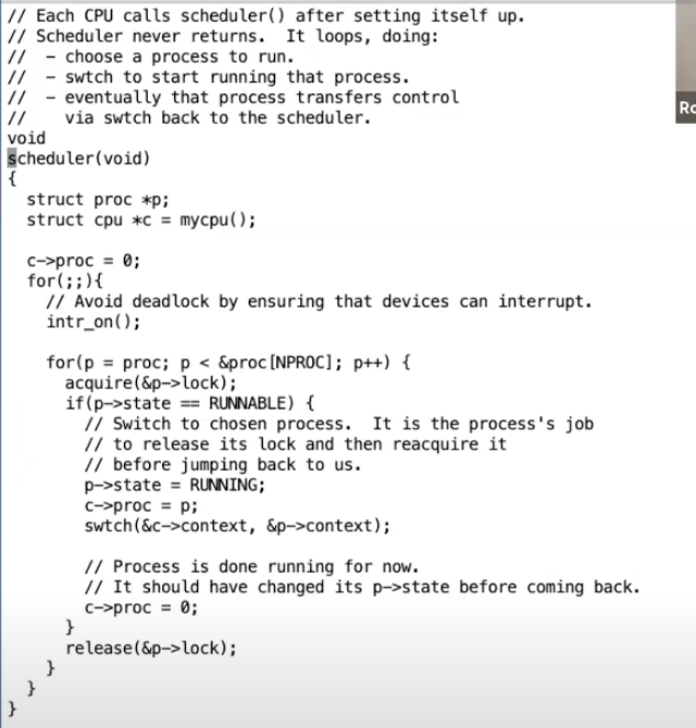 接下来我将简单介绍一下p->lock。从调度的角度来说,这里的锁完成了两件事情。